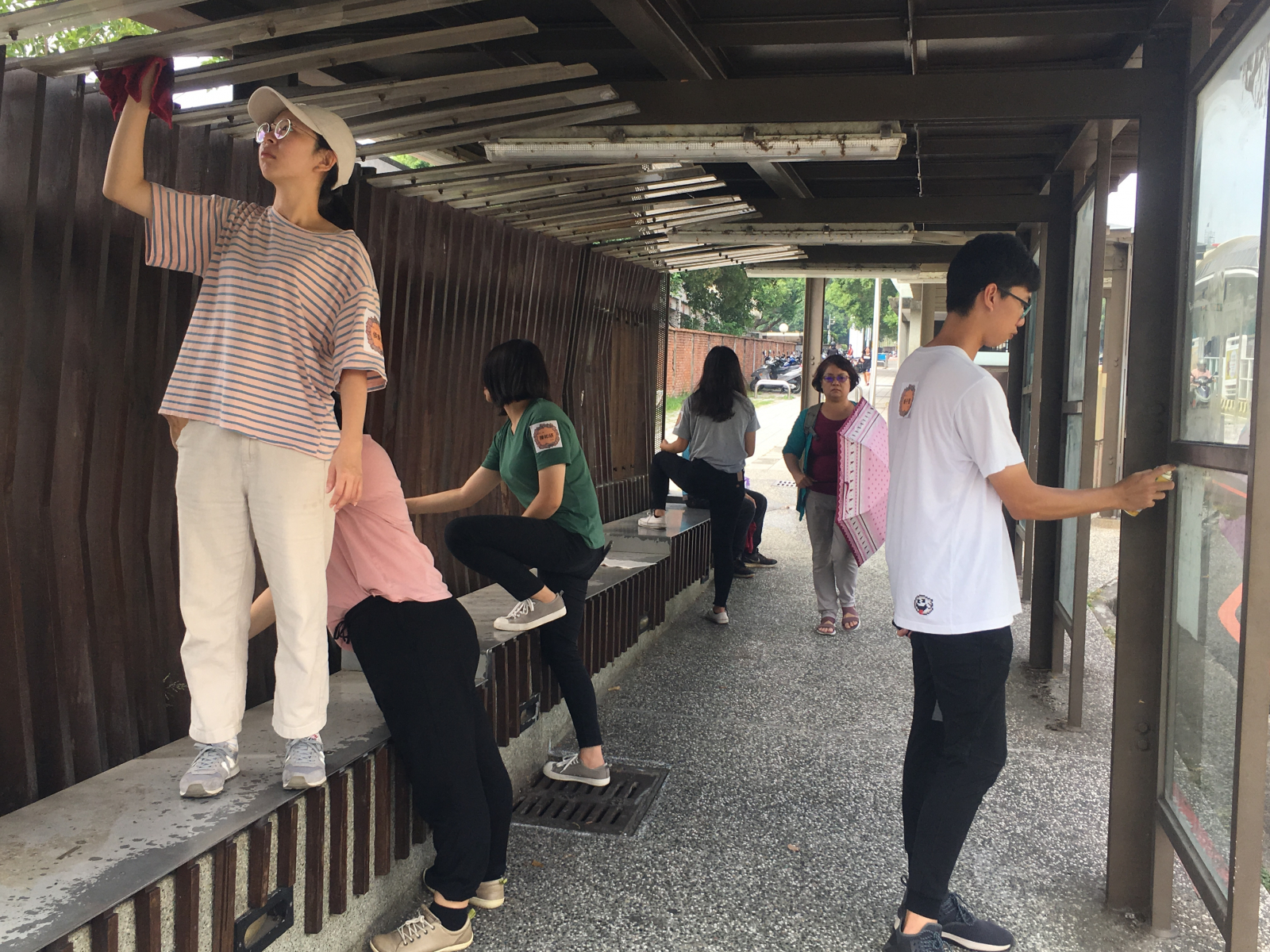 場域以第一教學區衛生間及假日校園主要道路清掃為範疇服務師生。