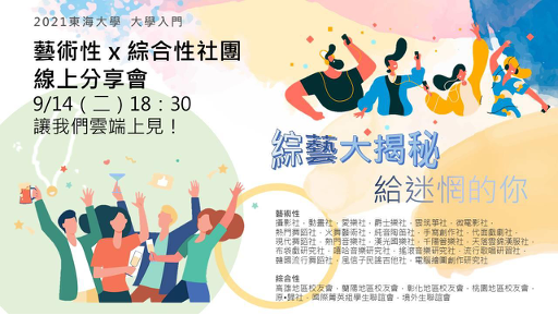你還在為要不要參加或要參加哪個社團而感到迷茫嗎,那就來聽聽我們的介紹吧! 讓社團彰羅你的大學生活,把原本沒交集的人聚在藝起企桃,在蘭天下藝起燃燒心中雄雄的火焰~