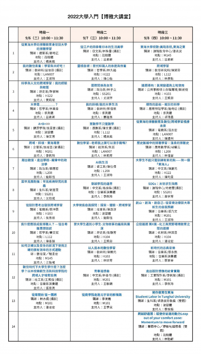 時段一 9/6 (二) 10:00-11:30 講座資訊