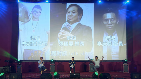 THU President Dr. Kuo-En Chang, along with senior alumni Geng-Xi Lee from the Class of '95 and Chih-Ju Lin from the Class of '96, engaged in a discussion on the themes of liberal education, digital learning, and interdisciplinary studies.