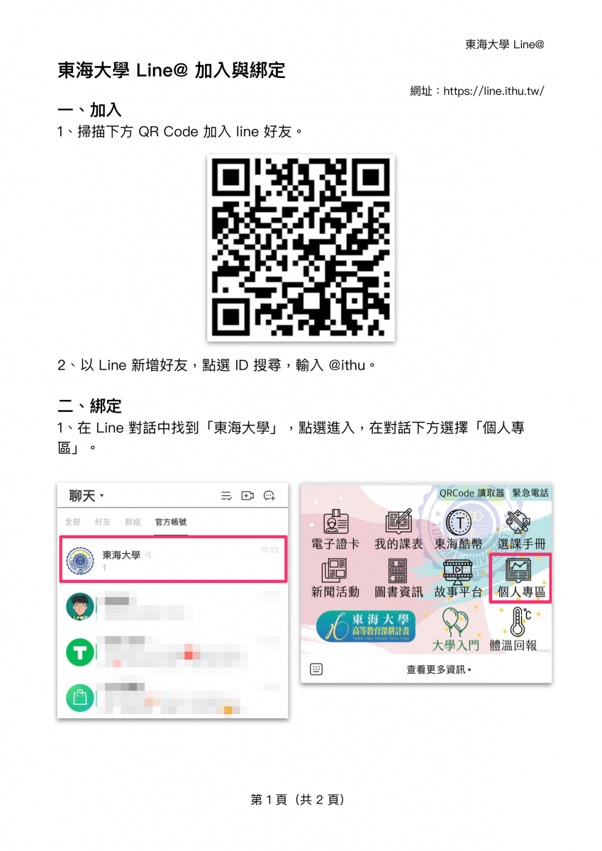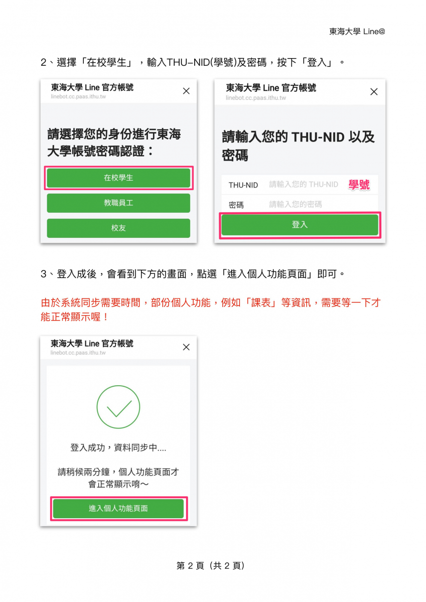新生資料填寫、THU-NID帳號啟用與加入東海Line官方帳號三步驟: