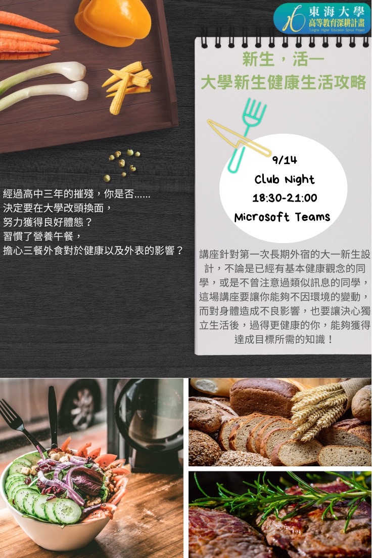 09/14晚上18:30-20:30與你在TEAMS不見不散!經過高中三年的摧殘,你是否決定要在大學改頭換面,努力獲得良好體態?